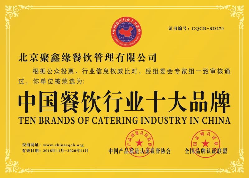 北京聚鑫緣餐飲管理有限公司是由目前餐飲界領軍人物,全國飯店業高級評委、國家級技能競賽裁判員、高級營養配餐師、2005年第三屆國際食神爭霸賽個人金獎、銀獎得主、中國烹飪大師,張寶田先生創辦,注冊資金:3888萬元,北京市政府采購定點服務單位,公司成立以來相關業務已覆蓋全國部分城市。本公司是國家有關部委批準建立的以管理與經營各企事業、大中專院校餐廳、機關、食堂承包托管、酒店酒樓人才勞務輸出、前期策劃籌建、餐飲管理咨詢、廚房設備規劃安裝、糧油及原材料配送等綜合性后勤服務機構。